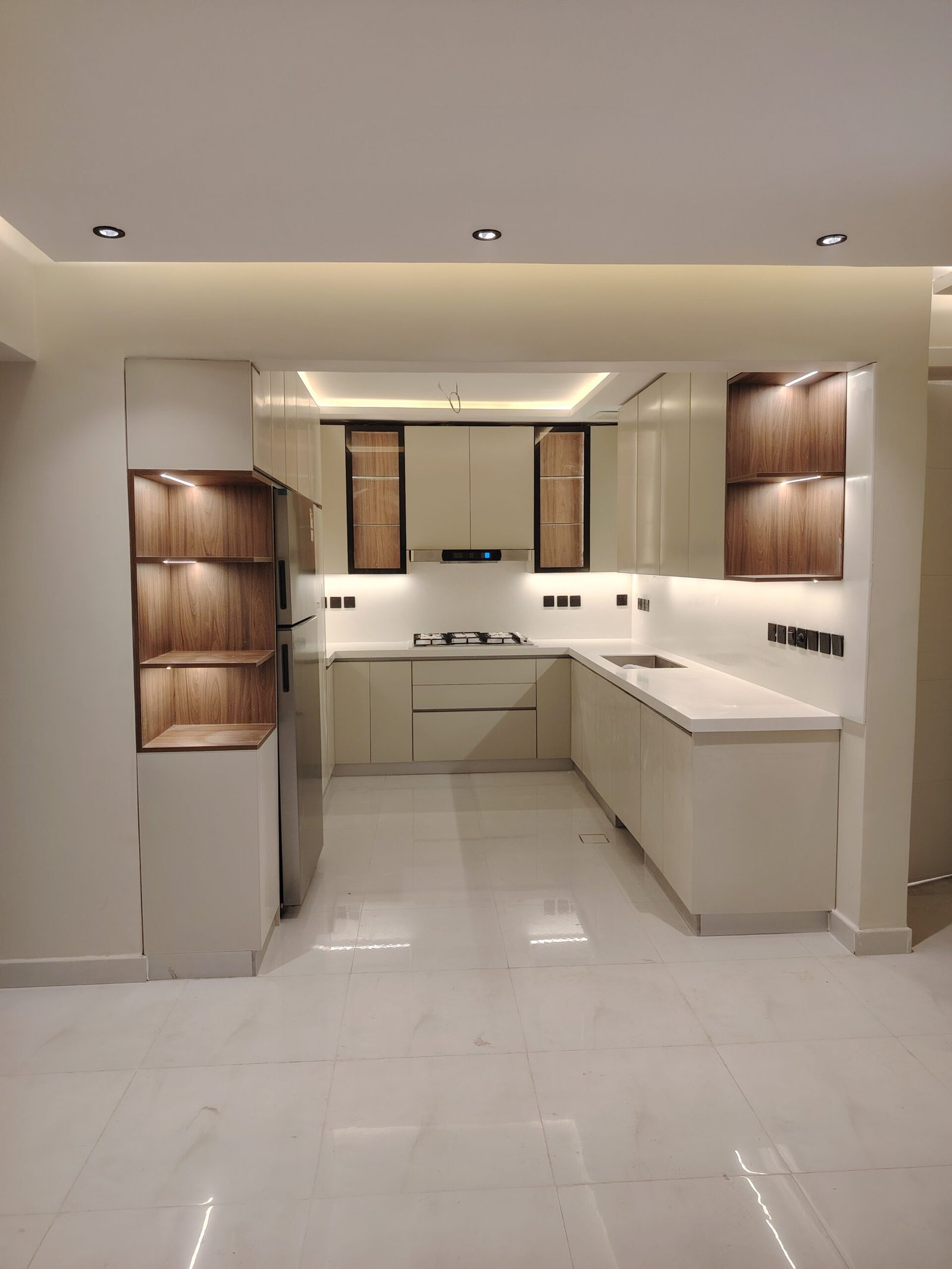 يأتي مطبخ الخشب المطفي بألوان محايدة وجذابة، مثل البني الدافئ، البيج، والرمادي الخشبي، مما يتيح لك دمج التصميم بسهولة مع مختلف أنواع الديكورات الداخلية. هذه الألوان الطبيعية تساعد على خلق توازن مثالي داخل المساحة وتمنح حرية أكبر عند اختيار الإكسسوارات أو عناصر الديكور الأخرى.